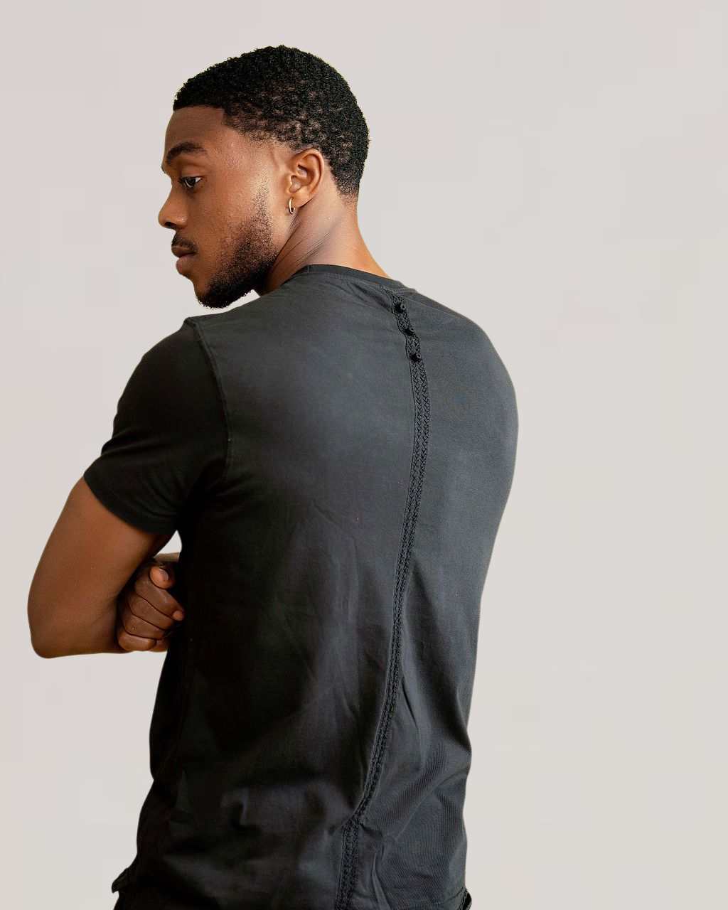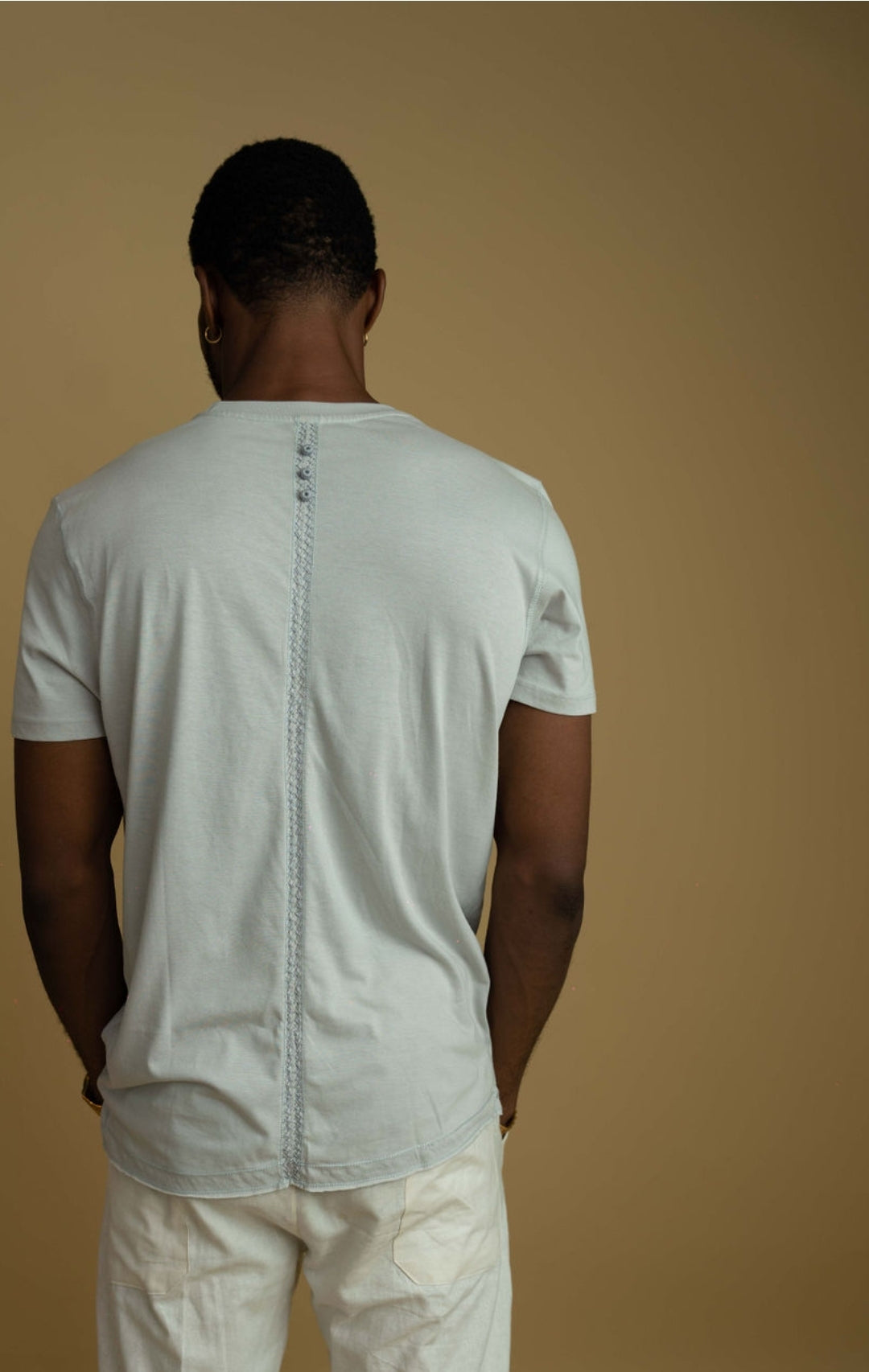 The Tribe Crew t-Shirt is ideal for a night out with friends or brunch with the family. This slim fitted t shirt can be paired with denim, khaki or linen pants and has tonal hand embroidered  tribal stitches on the spine of the shirt to give a subtle fun look.